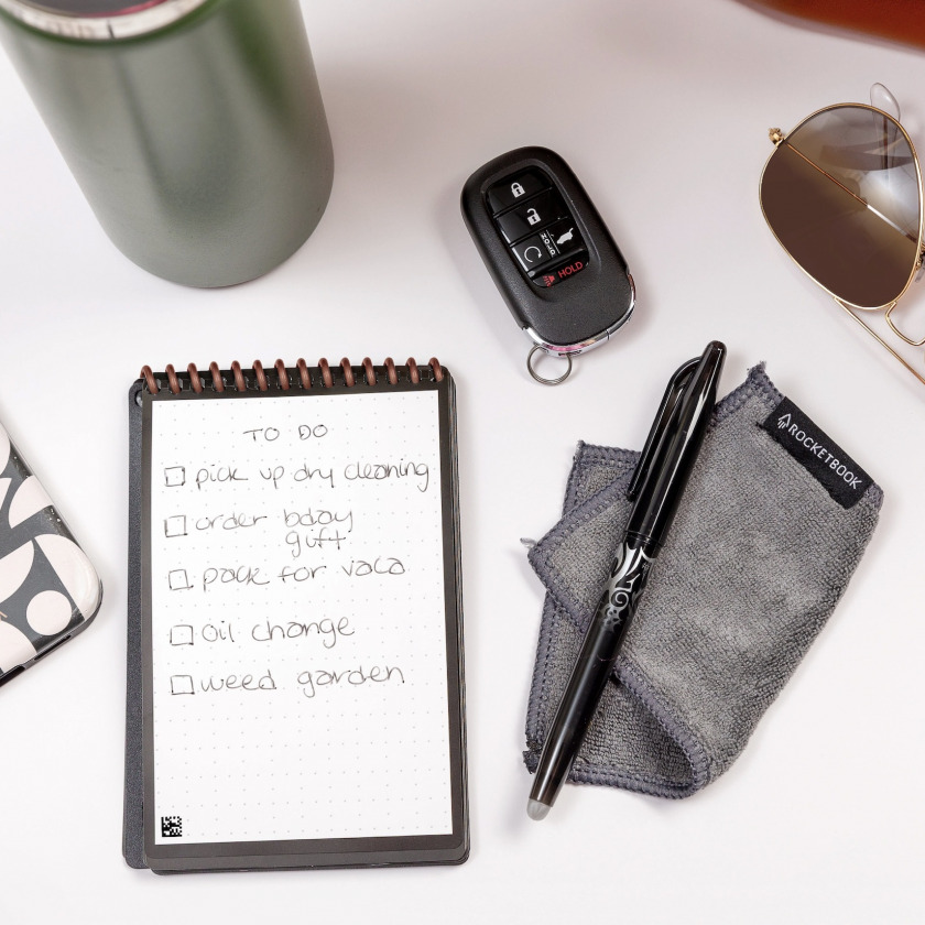 Rocketbook Mini — это карманный гаджет для тех, кто хочет сохранять мысли, а не бумагу. Пишите, стирайте, сканируйте — и повторите это 1000 раз, пока не захотите купить второй (шутка, он вечный) .