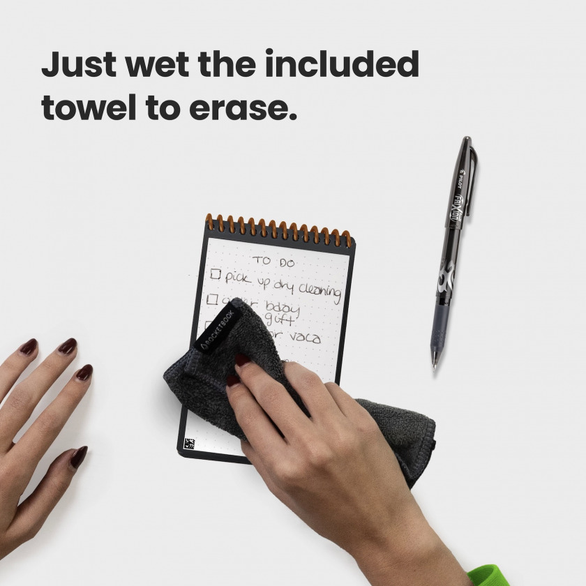 Rocketbook Mini — это карманный гаджет для тех, кто хочет сохранять мысли, а не бумагу. Пишите, стирайте, сканируйте — и повторите это 1000 раз, пока не захотите купить второй (шутка, он вечный) .
