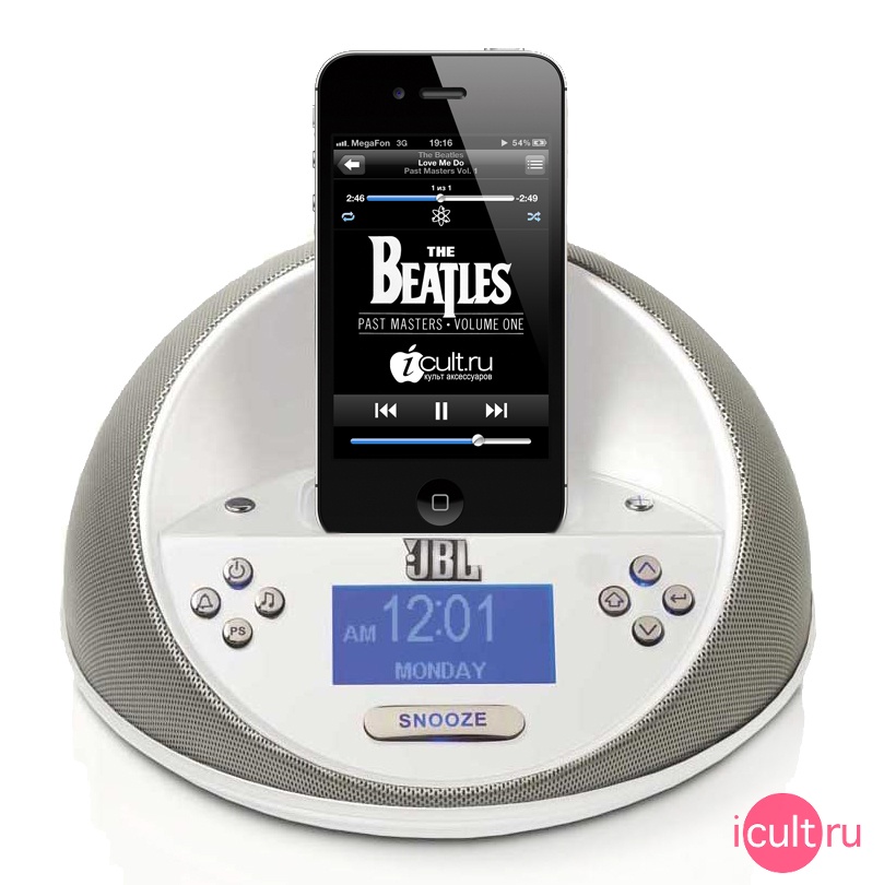 Если вам не хватает громкости будильника в iPhone, то купив JBL ON TIME MICRO, вы раз и навсегда решите эту проблему, поскольку эта замечательная акустическая система имеет встроенный будильник и радиоприемник, к тому же вы сможете вывести на динамики JBL ON TIME MICRO и встроенный будильник iPhone/iPod Touch, получая возможность просыпаться под любимые треки. На дисплее JBL ON TIME MICRO отображаются цифровые часы и день недели, а благодаря подсветке экрана эта информация видна даже ночью. Покупая акустическую систему JBL ON TIME MICRO черного цвета, вы получаете еще и стильные настольные цифровые часы с будильником!
