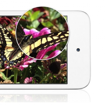 Как и в предыдущей модели, в iPod Touch используется экран Retina, сделанный по технологии TN+Film и отображающий до 16 миллионов цветов с естественной цветопередачей и высокой яркостью и контрастностью. Технология Retina ("Сетчатка") обеспечивает настолько четкое изображение, что увидеть отдельные пиксели невозможно. Экран вплотную прилегает к переднему стеклу, поэтому углы обзора составляют 178 градусов, а это значит что изображение одинаково смотрится, независимо от того как вы держите устройство. Высокое разрешение дисплея (960 х 640 точек) заставляет шрифты, фотографии и фильмы смотреться по-новому - такая детализация способна поразить даже самого искушенно пользователя.