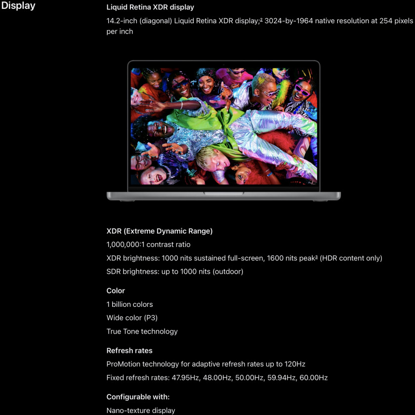 * 14,2 дюйма, разрешение 3024×1964, ProMotion 120 Гц .