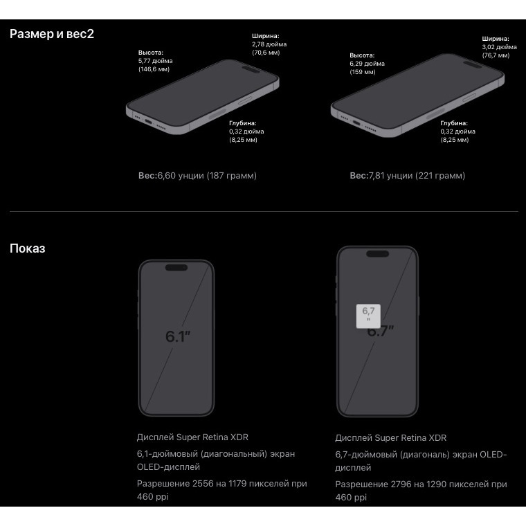 - Тип экрана: Цветной Super Retina XDR (OLED), 16.78 млн цветов, сенсорный 120 Гц