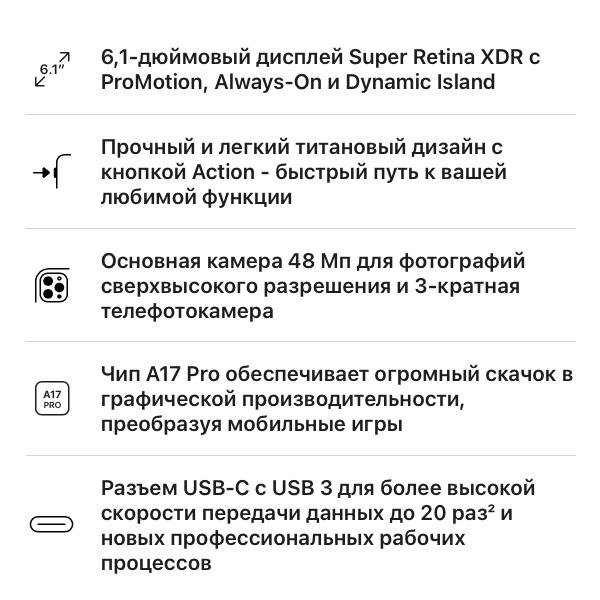 - Процессор: Apple A17 Pro (3nm)