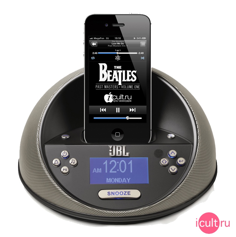 Если вам не хватает громкости будильника в iPhone, то купив JBL ON TIME MICRO, вы раз и навсегда решите эту проблему, поскольку эта замечательная акустическая система имеет встроенный будильник и радиоприемник, к тому же вы сможете вывести на динамики JBL ON TIME MICRO и встроенный будильник iPhone/iPod Touch, получая возможность просыпаться под любимые треки. На дисплее JBL ON TIME MICRO отображаются цифровые часы и день недели, а благодаря подсветке экрана эта информация видна даже ночью. Покупая акустическую систему JBL ON TIME MICRO черного цвета, вы получаете еще и стильные настольные цифровые часы с будильником!