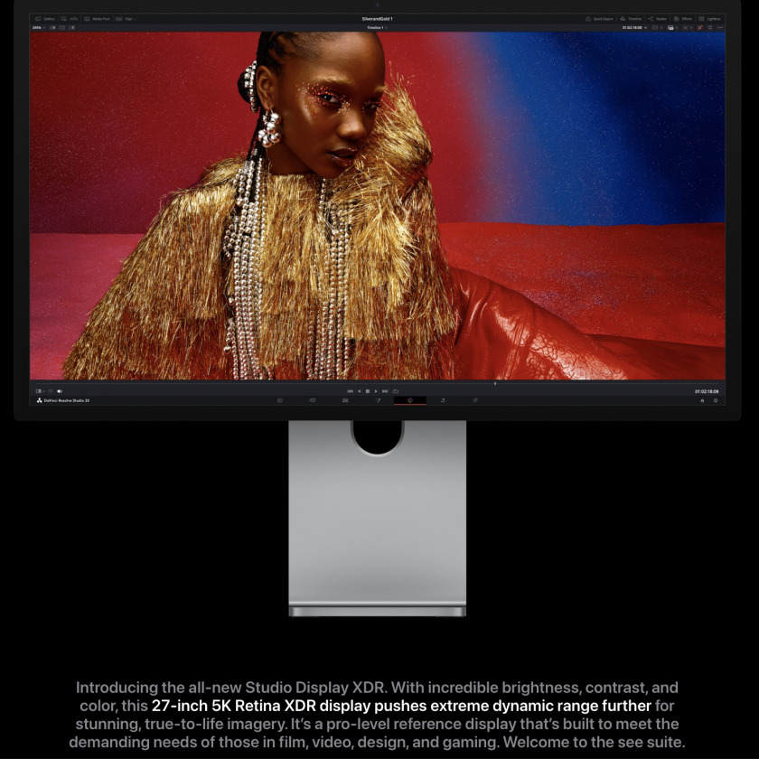 Apple представляет Studio Display XDR — монитор, который переводит профессиональную работу с цветом, светом и движением на совершенно новый уровень. Разработанный для самых требовательных специалистов — от голливудских режиссёров до медицинских диагностов — он объединяет передовую mini-LED технологию, невиданную яркость и революционную точность цветопередачи.