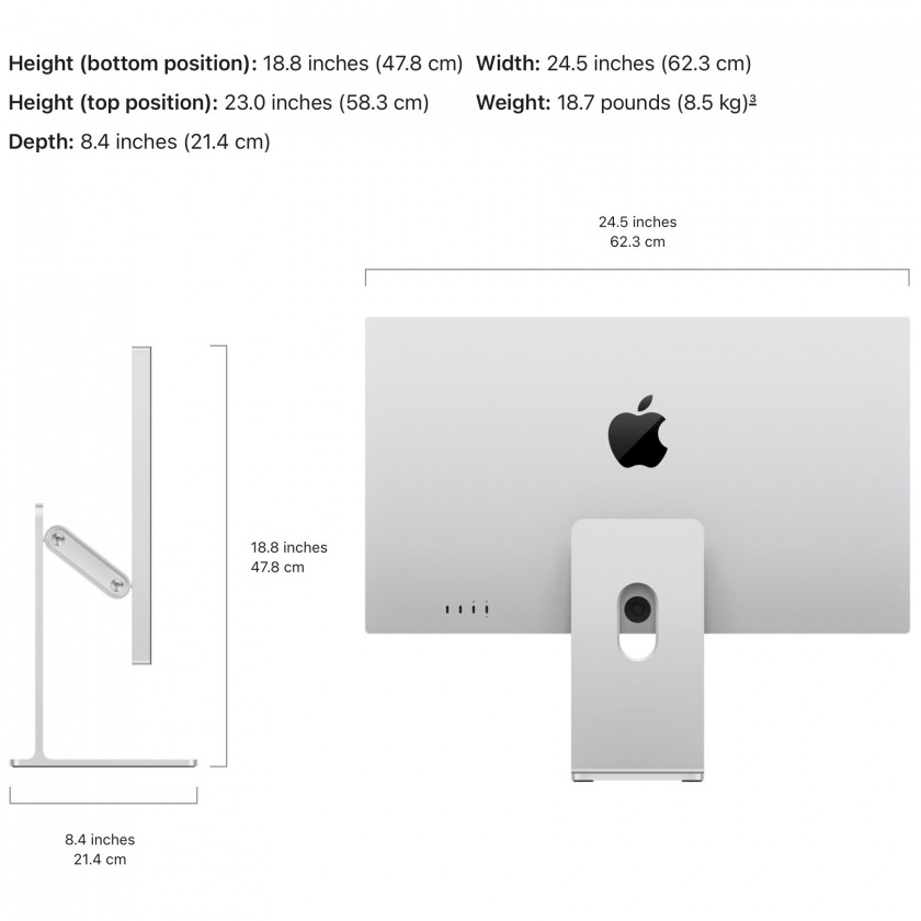 - Тип экрана: цветной, матовый Nano-texture glass, тип IPS-LCD, подсветка Mini-LED с 2304 зонами затемнения, Retina 5K