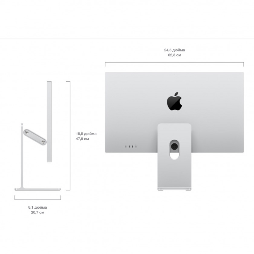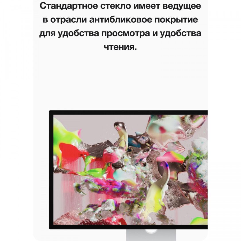 · Поддержка цепочек (daisy chain) — вы можете последовательно подключить до четырёх мониторов Studio Display, получив почти 60 миллионов пикселей рабочего пространства.