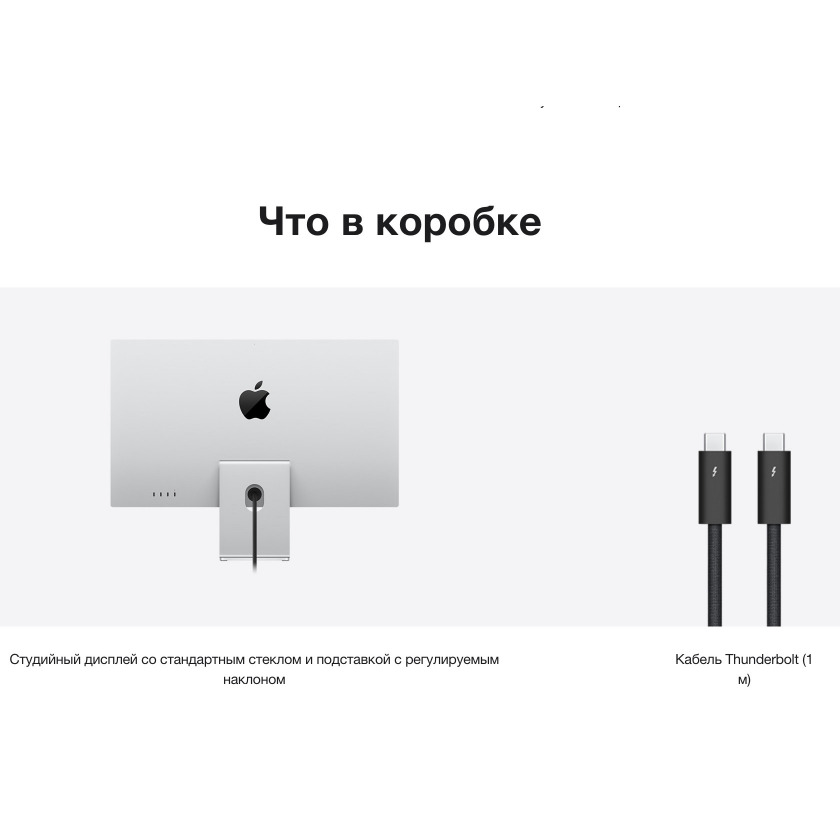 В комплекте: монитор с подставкой (наклон) или VESA-креплением (на выбор), кабель Thunderbolt 5 Pro, документация.