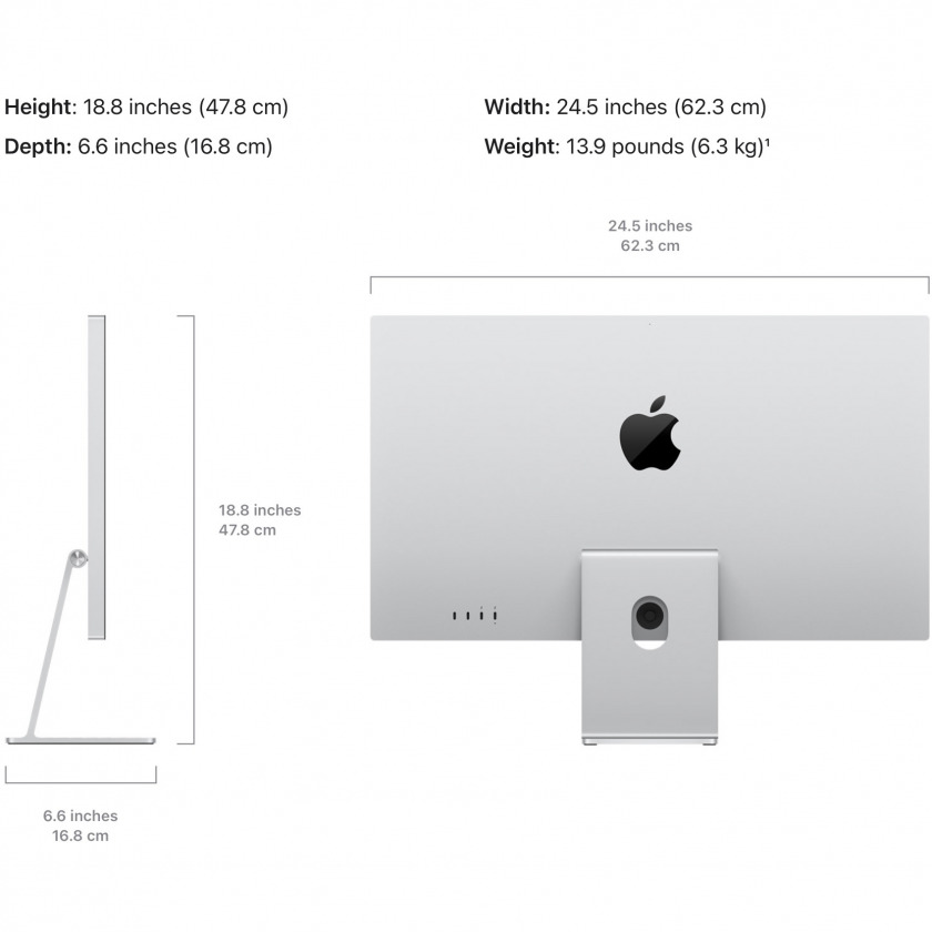 · Поддержка цепочек (daisy chain) — вы можете последовательно подключить до четырёх мониторов Studio Display, получив почти 60 миллионов пикселей рабочего пространства.