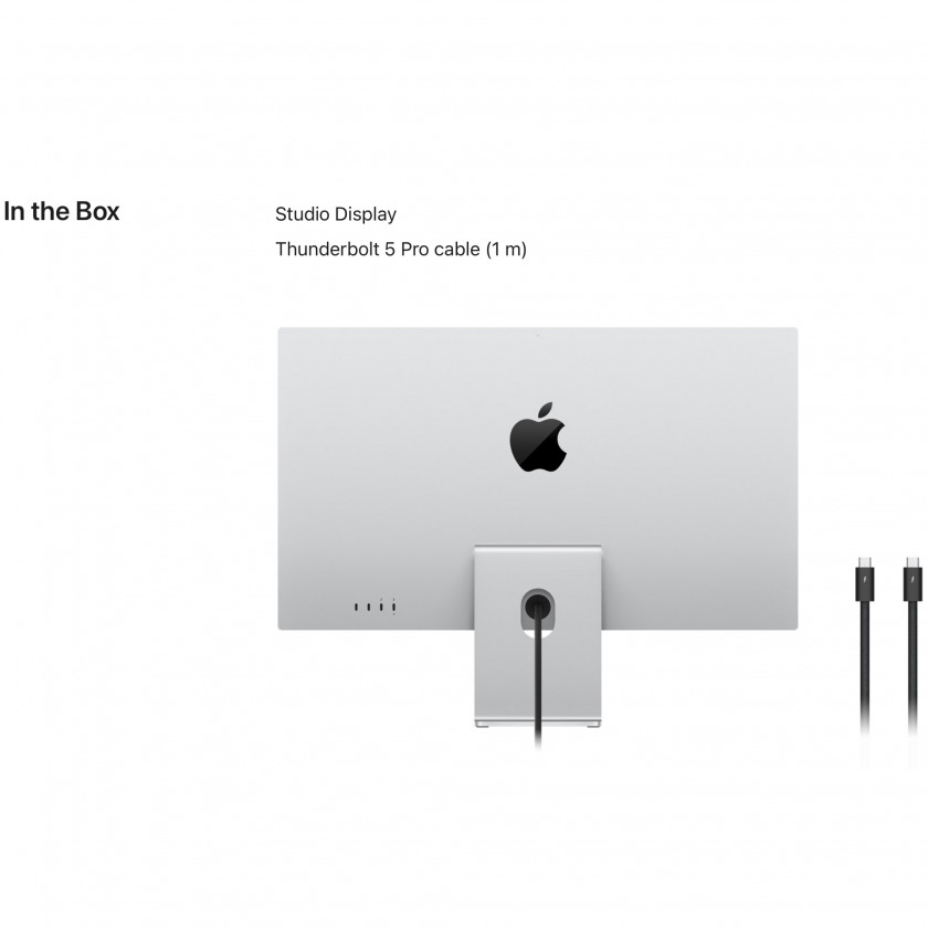 В комплекте: монитор с подставкой (наклон) или VESA-креплением (на выбор), кабель Thunderbolt 5 Pro, документация.