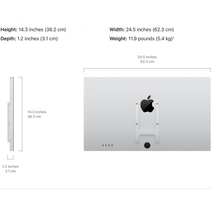 · Поддержка цепочек (daisy chain) — вы можете последовательно подключить до четырёх мониторов Studio Display, получив почти 60 миллионов пикселей рабочего пространства.