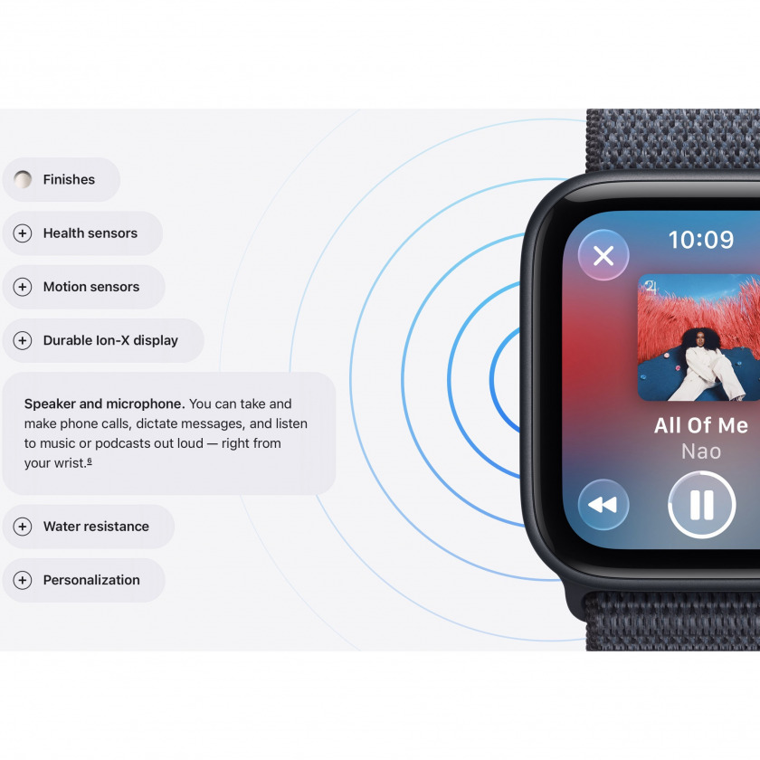 Смарт-часы Apple Watch SE 3 GPS, 44mm Midnight Aluminum Case with Midnight Sport Band - M/L 160-210мм темно-синий/черный