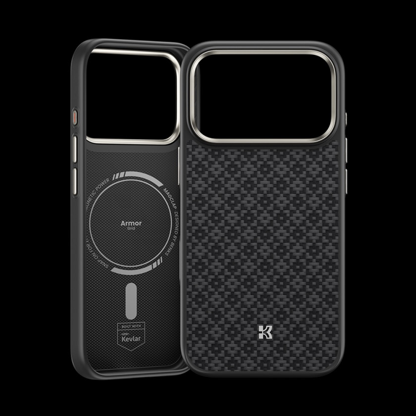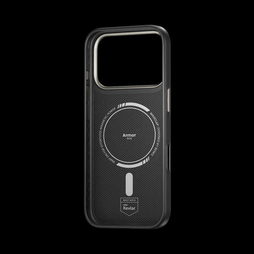 Чехол ArmorGrid ArmorPro, основанный на геометрических формах и усовершенствованный благодаря традиционному ремеслу, соткан из волокна DuPont™ Kevlar® в технике ткачества Jiaoluo. Это создает текстуру, в которой упругость сочетается с мастерством, воплощая защиту с помощью дизайна. Черный, как обсидиан, цвет корпуса отражает неподвластную времени прочность — утонченность, властность и долговечность.