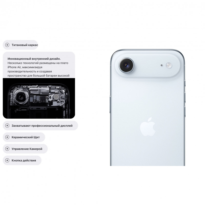 iPhone 17 Air работает на чипе Apple A19 Pro (3 нм) с 6-ядерным CPU и 5-ядерным GPU. Нейропроцессор с Neural Accelerators ускоряет задачи ИИ, включая обработку фото и видео. Объем оперативной памяти — 12 ГБ, что обеспечивает многозадачность и работу Apple Intelligence. Встроенная память доступна в вариантах: 256 ГБ, 512 ГБ и 1 ТБ.