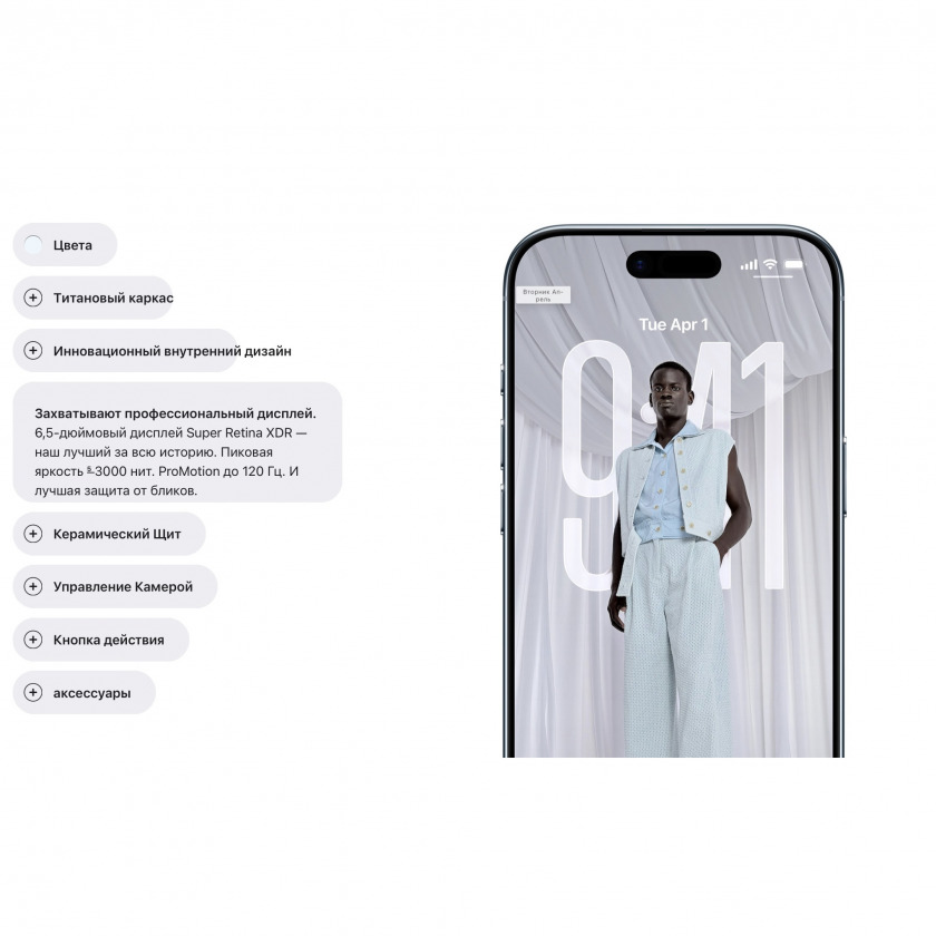 - Тип экрана: Цветной Super Retina XDR (OLED), 16.78 млн цветов, сенсорный 120 Гц