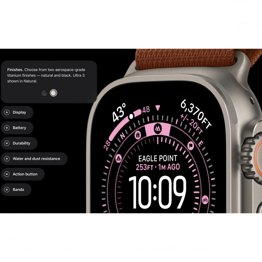 · Экран, который видно из космоса: Широкоугольный Always-On Retina дисплей с невероятной пиковой яркостью в 3000 нит. Это самый яркий экран в истории Apple Watch. Вы сможете читать карту или смс даже под палящим солнцем, не щурясь.· Батарея, которая не сдаётся: До 42 часов работы в обычном режиме и до 72 часов в режиме энергосбережения. Этого хватит на уик-энд приключений без единой розетки. А с быстрой зарядкой всего 15 минут в пути дадут вам до 12 часов обычного использования. Это как если бы у вас был собственный генератор бесконечной энергии.