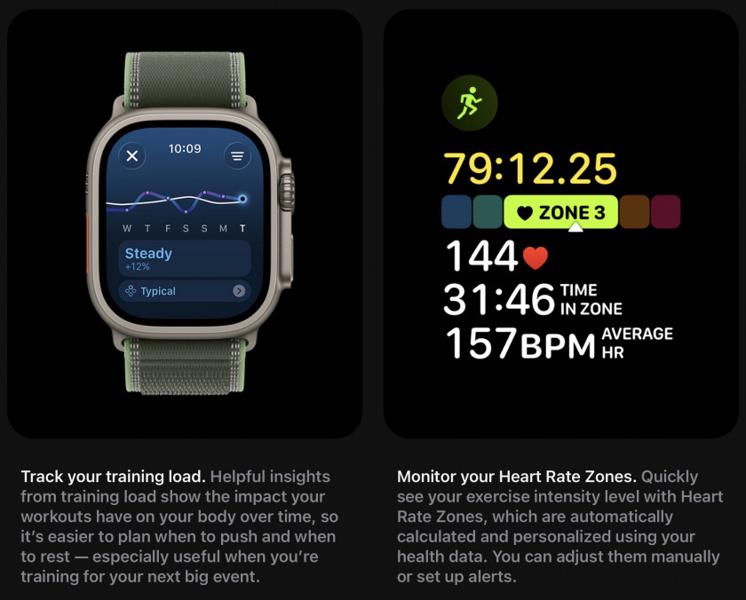 · Для бегунов: С Apple Watch Ultra 3 вы будете знать о своей пробежке всё. Благодаря лучшему в своем классе GPS с двойной частотой они отслеживают ваш маршрут, темп и дистанцию с беспрецедентной точностью. А с персонализированными тренировками и новым «Напарником для тренировок» (Workout Buddy) на базе Apple Intelligence, вам будет казаться, что с вами бежит личный мотивационный тренер.