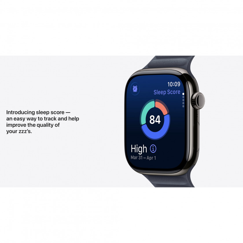 · Забота о здоровье: Часы оснащены революционной функцией уведомлений о гипертонии, которая может предупредить о признаках хронически высокого кровяного давления. Также вы получаете оценку качества сна (Sleep Score) и уведомления о возможном апноэ сна. Полный набор датчиков включает приложение ЭКГ, измерение уровня кислорода в крови и высоко- и низкочастотные оповещения о пульсе.