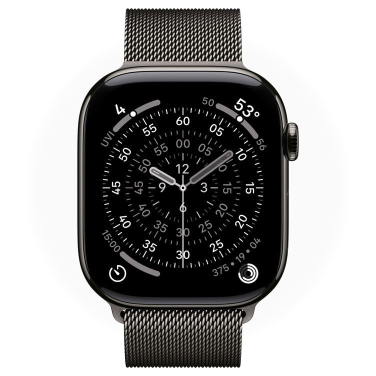 · Стекло сапфирового кристалла: В титановой версии экран защищен сапфировым стеклом — одним из самых прозрачных и устойчивых к царапинам материалов, что гарантирует сохранность безупречного вида дисплея. Для справки: в алюминиевых версиях Series 11 используется стекло Ion-X, которое, по заявлению Apple, стало в 2 раза устойчивее к царапинам, чем у предыдущего поколения.