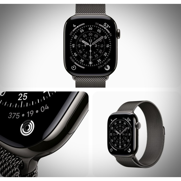 · Milanese Loop: Этот классический браслет из плетеной нержавеющей стали мягко облегает запястье благодаря магнитному замку. Его сетчатая структура обеспечивает не только стильный вид, но и комфорт в течение всего дня.